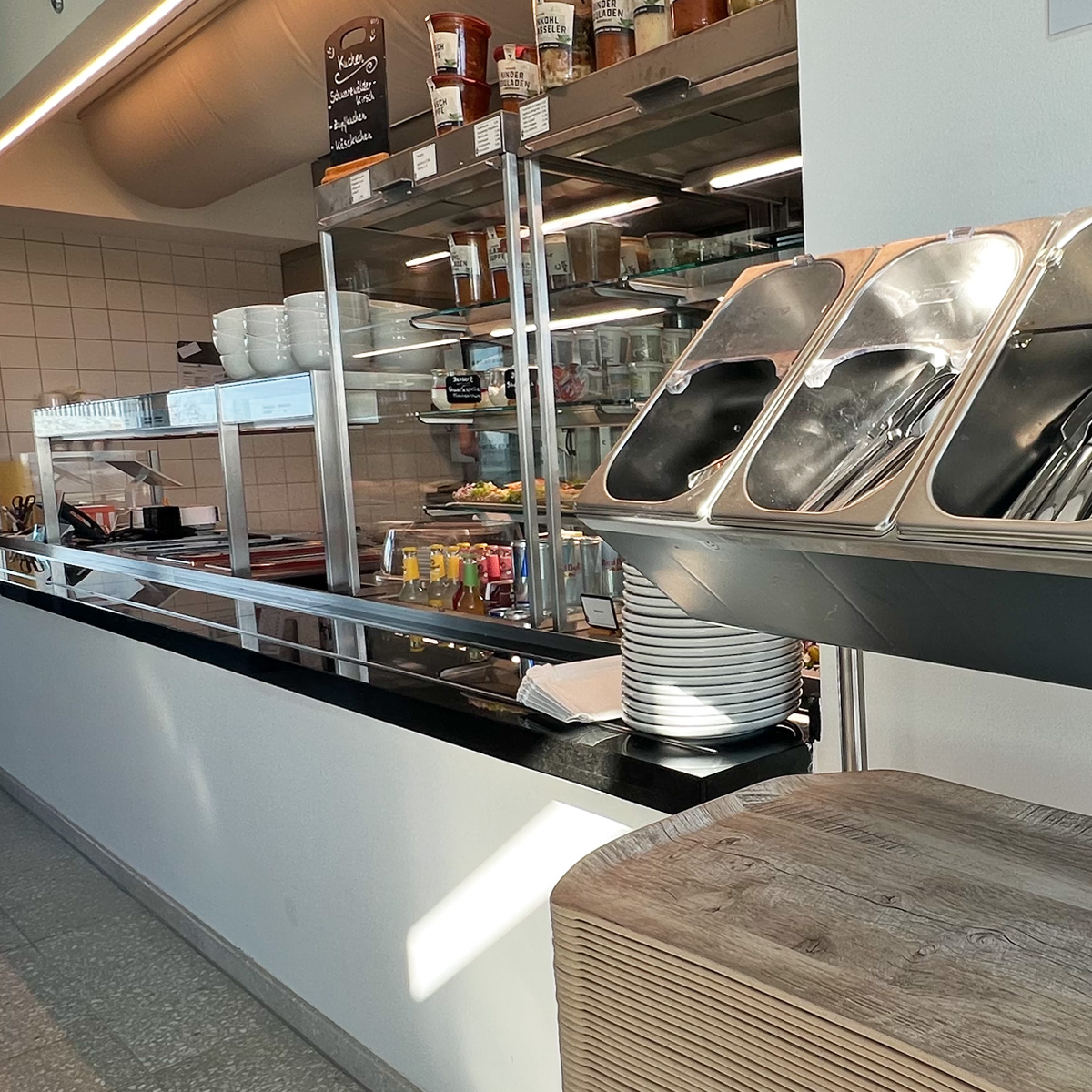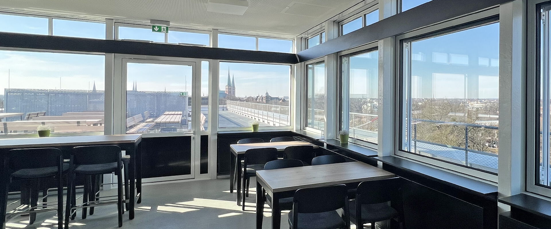 Ein weiterer Pluspunkt ist der Ort selbst. Der Speisesaal ist lichtdurchflutet und bietet einen beeindruckenden Rundblick über Lübeck. Von Montag bis Freitag ist die Kantine für alle geöffnet, Frühstück gibt es am Vormittag, ehe der Mittagstisch folgt. Dies kombiniert eine offene Atmosphäre mit der Qualität einer Manufaktur.