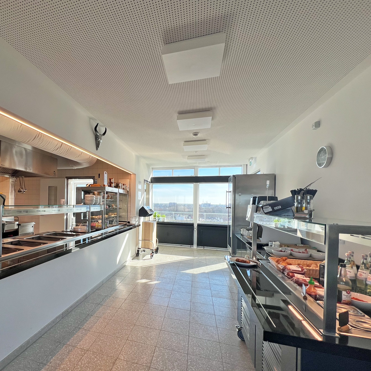 Ein weiterer Pluspunkt ist der Ort selbst. Der Speisesaal ist lichtdurchflutet und bietet einen beeindruckenden Rundblick über Lübeck. Von Montag bis Freitag ist die Kantine für alle geöffnet, Frühstück gibt es am Vormittag, ehe der Mittagstisch folgt. Dies kombiniert eine offene Atmosphäre mit der Qualität einer Manufaktur.
